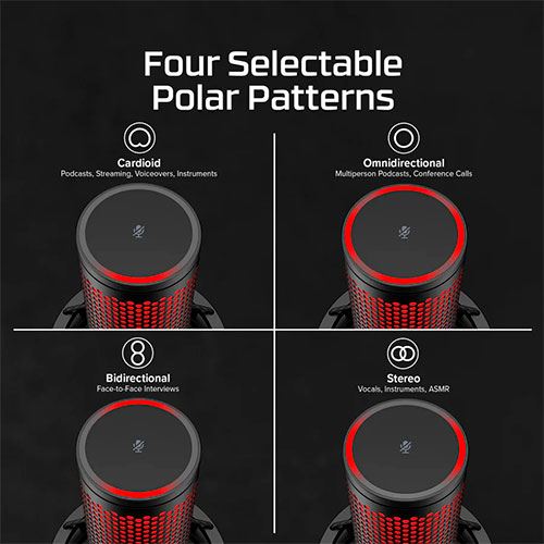 Profundidade de bits: 16 bits, 24 bits | Elemento: Três cápsulas condensadoras de eletreto de 14 mm | Resposta de frequência (fone de ouvido): 20Hz - 20kHz | Padrão polar: Cardióide, omnidirecional, estéreo, bidirecional | Taxas de amostragem: 44,1 kHz, 48 kHz, 96 kHz | Sensibilidade (microfone): '-7.5dB (1V/Pa a 1kHz) | Distorção harmônica total: = 0,05% (1kHz/0dBFS)
