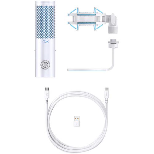 HyperX QuadCast 2 USB Microphone, Cabo USB-C para USB-C (3m), Adaptador USB-C para USB-A, Guia de Início Rápido