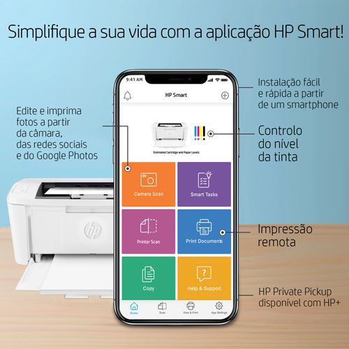 USB 2.0 | Wi-Fi 802.11 b/g/n | Apple AirPrint | Certificação Mopria | Wi-Fi Direct | Aplicativo HP Smart