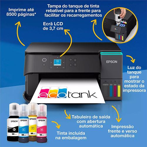 Sistema EcoTank com garrafas de tinta de alto rendimento