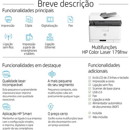 Impressora Multifunções HP Color Laser 179fnw - Wi-Fi
