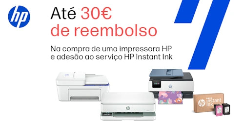 Na compra de uma impressora HP com adesão ao HP Instant Ink, recebe até 30€ de reembolso.