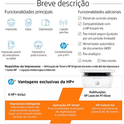 Impressora HP LaserJet MFP M140we Printer 7MD72E
