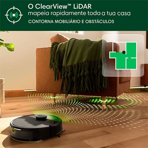 Tecnologia ClearView LIDAR mapeia rapidamente, navega e evita obstáculos | Personalização da limpeza com Roomba® Home app | Comandos de voz*** | Cria zonas a limpar e zonas interditas | 3 modos de limpeza: aspiração, lavagem e limpeza combinada
