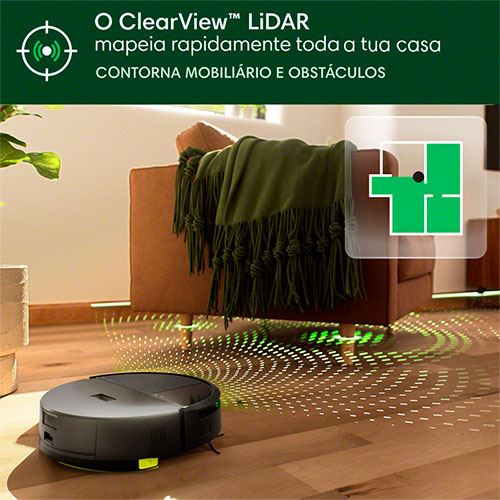 Tecnologia ClearView LIDAR mapeia rapidamente, navega e evita obstáculos | Personalização da limpeza com Roomba® Home app | Comandos de voz*** | Cria zonas a limpar e zonas interditas | 3 modos de limpeza: aspiração, lavagem e limpeza combinada