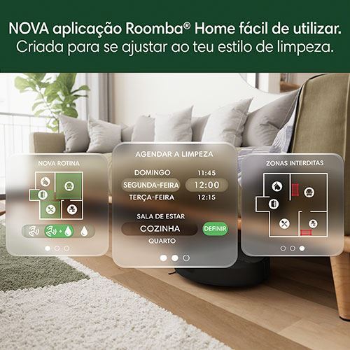 ClearView LIDAR mapeia rapidamente, navega e evita obstáculos | Personalização da limpeza com Roomba® Home app | Comandos de voz*** | Cria zonas a limpar e zonas interditas | 4 modos de limpeza: aspiração, lavagem, limpeza combinada e limpeza sequencial