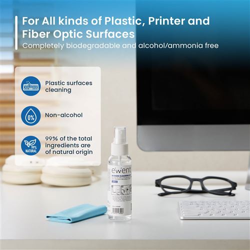 Kit Limpeza de Ecrãs Ewent EW5668 100ml + Pano de Microfibras 20x20cm