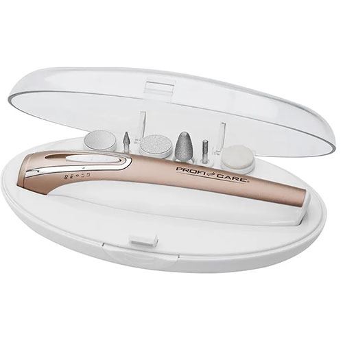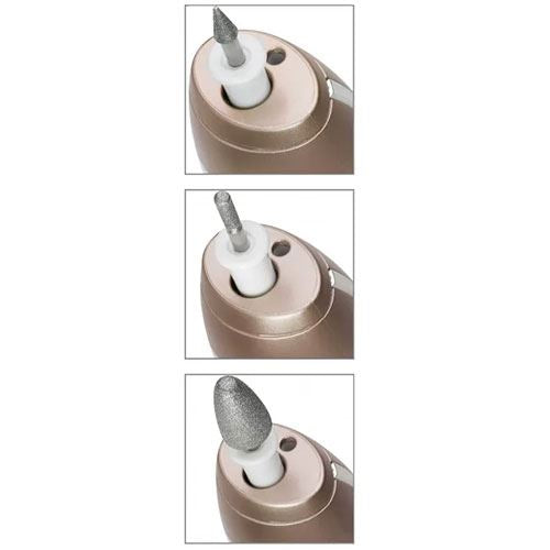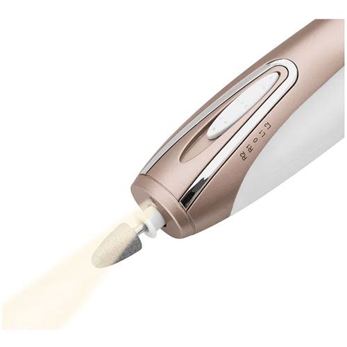 Manuseamento confortável | Dispositivo prático para o cuidado cosmético das mãos e pés | Envolvida numa prática caixa de armazenamento | Interruptor com 4 níveis (L1 / L2 / R1 / R2) | Rotação para a direita/esquerda | Luz piloto para um trabalho preciso e controlado