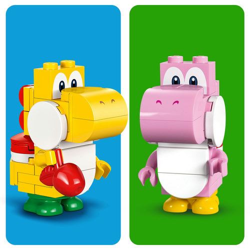 Dê início à diversão com os Yoshis na floresta com este brinquedo de construção LEGO® Super Mario™ (71428) para crianças 6+. Um presente divertido para jogadores, inclui figuras LEGO Super Mario do Yoshi Cor-de-Rosa e Yoshi Amarelo, além de uma floresta de peças com uma macieira e o Ovo do Yoshi. Ajude os Yoshis a colherem maçãs da árvore, a colocarem-nas no cesto e a cuidarem do Ovo do Yoshi. Para um jogo interativo, adiciona figura LEGO® Mario™, LEGO® Luigi™ ou LEGO® Peach™ de um Pack Inicial LEGO Super Mario (711360, 71387 ou 71403 - vendidos separadamente). Quando uma figura interativa usa a Etiqueta de Ação, o ovo aparece no seu ecrã digital. Embale a figura interativa como um bebé para chocar o ovo digital e ver qual o Yoshi que irá receber no ecrã da barriga. Depois, salte e rode para acionar a voz do Yoshi. Encontre as instruções de construção deste Set de Expansão na aplicação LEGO Super Mario, bem como inspiração para diferentes formas de construir e brincar.