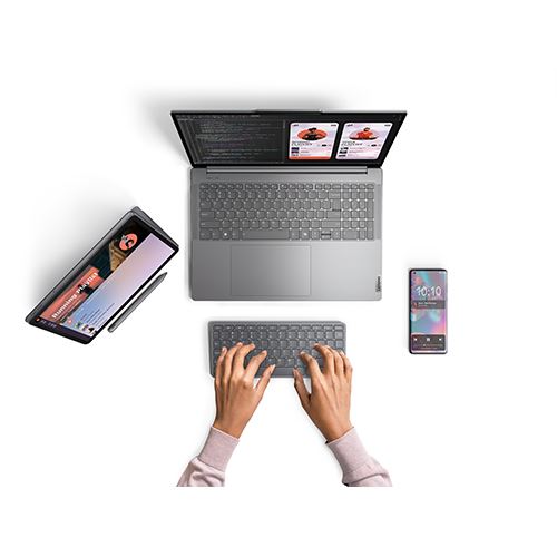 Atualize sua experiência de tablet com o teclado sem fio multiuso Lenovo. Conecte até 3 dispositivos e alterne entre eles sem esforço, independentemente do que esteja a usar: Android, Windows ou iOS.