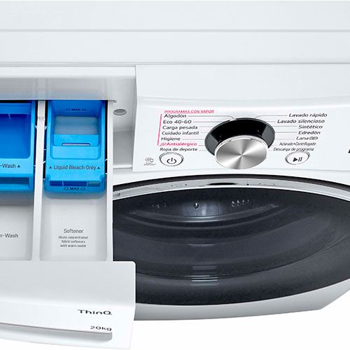 LG Algodão | Eco 40-60 | Edredão | Limpeza da cuba | Anti-alergias | Roupa de bebé | Roupa desportiva | Lavagem silenciosa | Lavagem à mão / Lãs | Enxaguamento + Centrifugação | Download de novos programas