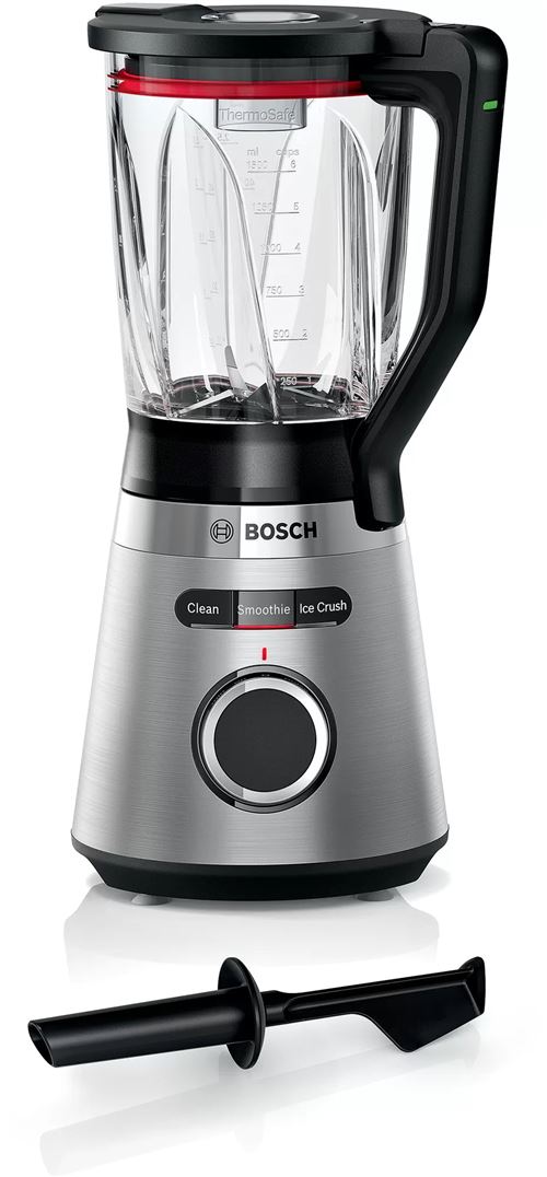 A liquidificadora Bosch pica, tritura e mistura os ingredientes de forma rápida e eficaz. Um poderoso motor de 1.200 W até 30.000 rpm permite processar qualquer tipo de ingrediente rapidamente. Nível de ruído: 80 dB