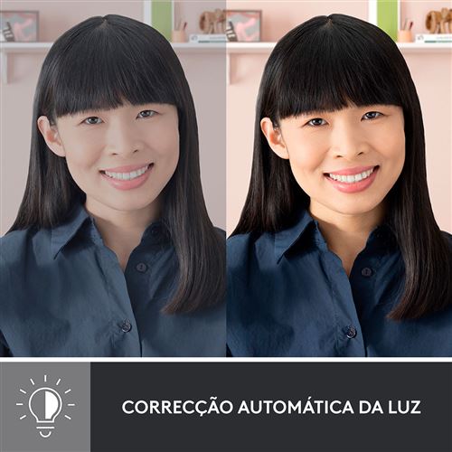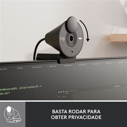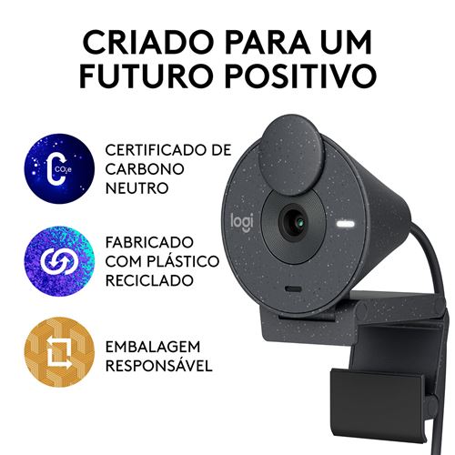 Webcam elegante de alta resolução com correção automática de luz para ajudar você a ser sua melhor versão em todas as videochamadas.