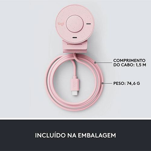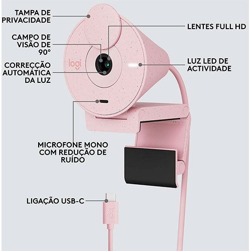 Uma webcam de 1080p com correção automática de luz, microfone com redução de ruídos e conectividade USB-C.