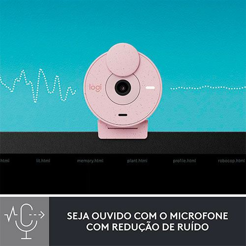 Webcam elegante de alta resolução com correção automática de luz para ajudar você a ser sua melhor versão em todas as videochamadas.