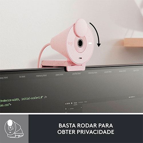 Gire facilmente o obturador de privacidade para bloquear completamente a câmara quando não estiver em uso. Quando estiver tudo pronto para sua próxima reunião, basta girar o obturador para revelar a lente.