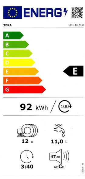 Máquina de Lavar Loiça Encastrável Teka DFS 46710 | 12 Talheres | 60 cm | E | Aço inoxidável