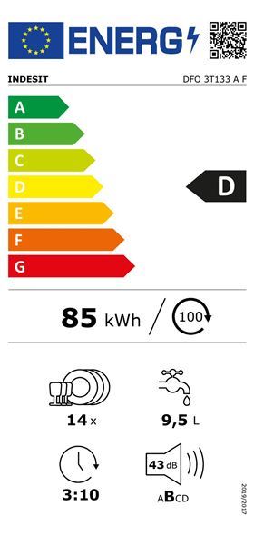 Máquina de Lavar Loiça Indesit Dfo 3T133 a F | 14 Talheres | 60 Cm | D | Branco - Outlet - Grade B