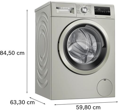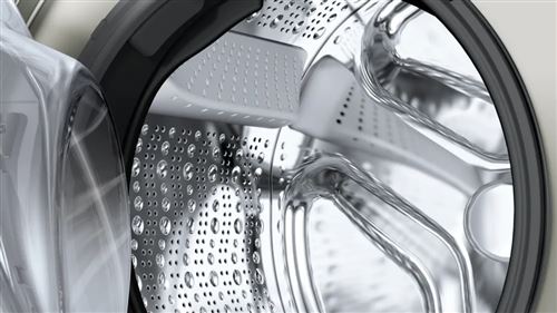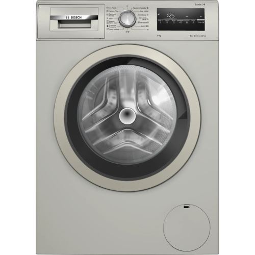 Serie 4 Máquina de Lavar Roupa, Carga Frontal 9 kg , Silver inox, com 1400RPM. Com classe energética A, consumo de água de 50 litros de água por ciclo e 0,49 a cada 100 ciclos de lavagem, esta máquina tem programada de redução de vincos.