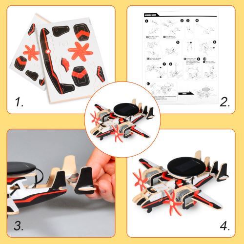 Sem ferramentas ou cola, um meticuloso trabalho de montagem espera por si para reconstruir este modelo de avião solar cujas hélices girarão graças aos motores ligados ao painel solar. Inspirado no Solar Impulse, esta formidável invenção pertence aos pilotos suíços Bertrand Piccard e André Borschberg: o seu avião monolugar, cujos motores elétricos eram movidos apenas por energia solar, fez uma bem-sucedida viagem ao redor do mundo com escalas, entre Março de 2015 e julho de 2016. Os dois visionários demonstraram, portanto, que 40.000 km poderiam ser percorridos sem uma única gota de combustível. O modelo de 21 peças é fácil de montar e vem com um painel solar real - com a energia solar armazenada, a hélice do avião gira mesmo. Características: Peças em contraplacado de tília e metal. Inclui: 21 peças e 1 guia de montagem ilustrado completo. Dimensões: C. 17 cm - L. 19 cm - A. 4 cm.