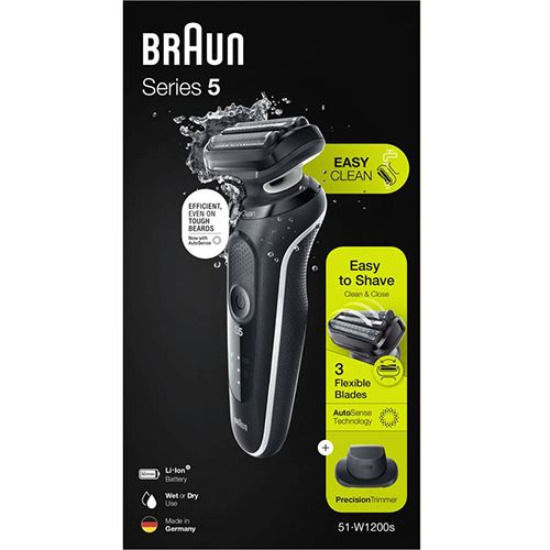 A máquina de barbear elétrica para homem Braun Series 5 torna o barbear fácil com 3 lâminas flexíveis que se adaptam aos contornos faciais.