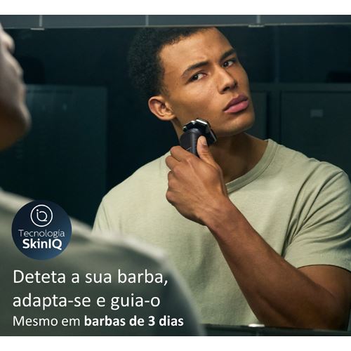 A Philips Series 5000 proporciona um barbear eficaz, cortando agora ainda mais pelos a cada passagem (em comparação com a Philips Series 3000.) Equipada com tecnologia SkinIQ avançada, a máquina de barbear deteta e adapta-se à densidade da barba, para um maior conforto da pele.