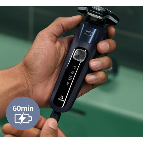 Carregue completamente a sua máquina de barbear em apenas 1 hora com a potente e energeticamente eficiente bateria de iões de lítio. Com pressa? Ligue a sua máquina de barbear durante 5 minutos e obtenha energia suficiente para 1 barbear completo.