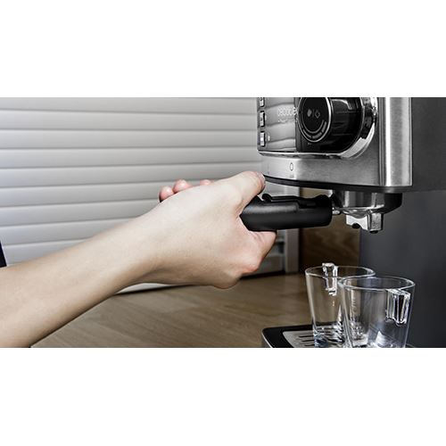 Possui braço com saída dupla e dois filtros, permitindo preparar uma ou duas chávenas simultaneamente. O depósito de água removível de 1,5 L e o tabuleiro para aquecer chávenas oferecem praticidade e melhor experiência. Inclui colher doseadora com prensador e bandeja de gotejamento amovível para limpeza fácil.