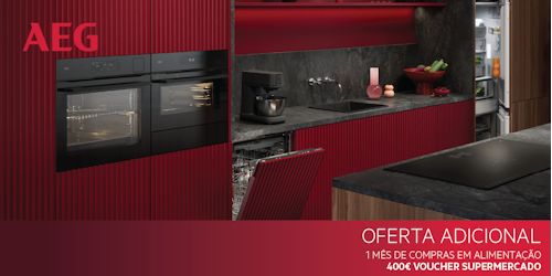 Na compra de 4 ou mais produtos de encastre, com valor total ≥2500€, oferta de 400€ em voucher supermercado.