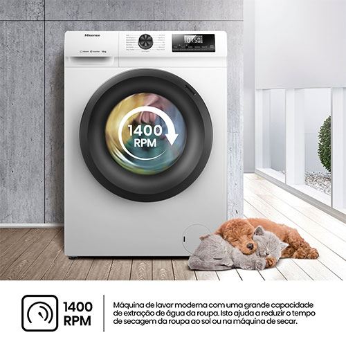 Máquina de Lavar Roupa Hisense WF1Q1041BW | 10 Kg | 1400 RPM | A | Branco