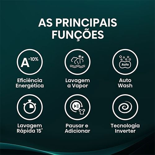 Tambor em Aço inoxidável | Lavagem rápida 15´ | Bloqueio para crianças