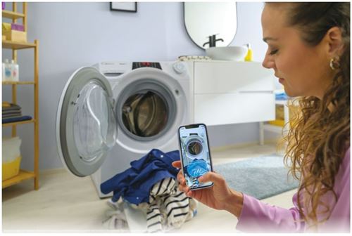 A Candy RO 4106DWMC7/1-S com capacidade de carga de 10 kg e velocidade de centrifugação de 1400 RPM, insere-se na eficiência energética A.