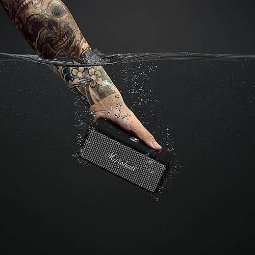 Material: capa de silicone texturada | Grelha de metal sólido | À prova de água IPX67 | APP Marshall Bluetooth | Sim Stereophonic (uma forma única de som multidirecional da Marshall - onde cada ponto é um ponto ideal)