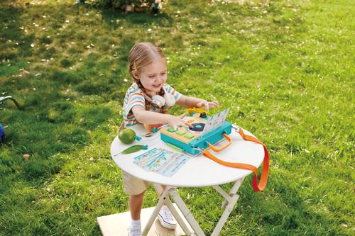 Música ao ar livre: Graças à sua correia, os pequenos exploradores levam a sua misturadora para todo o lado: no jardim, no parque ou num passeio. A descoberta da música torna-se uma aventura ao ar livre!