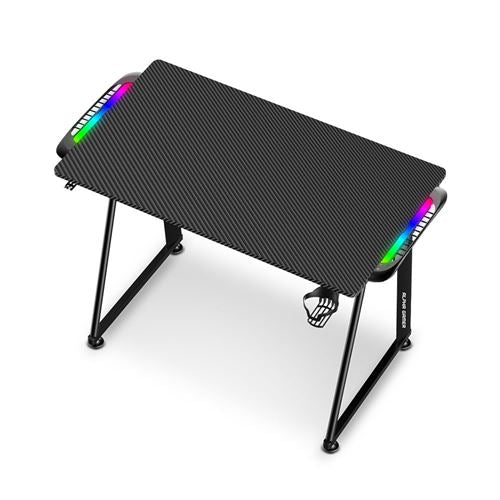 Tampo com textura em carbono / Sistema de iluminação RGB / Suporte para headset / Porta copos / Máximo peso permitido: 40Kg
