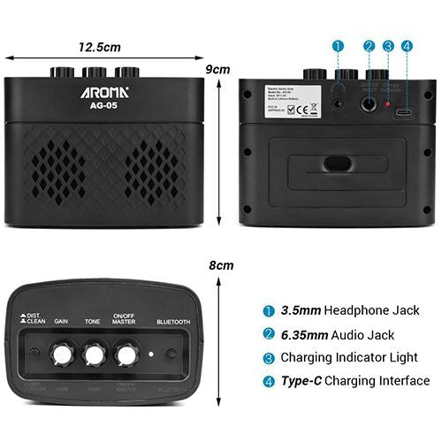 Mini Amplificador Aroma AG-05 GT 5W - Preto