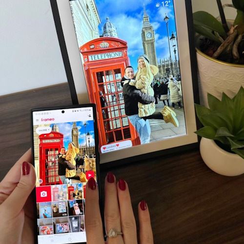 A sua família e amigos podem enviar as suas melhores fotos diretamente para a sua moldura digital via WiFi, onde quer que estejam no mundo, graças à app FRAMEO (compatível com iOS e Android).