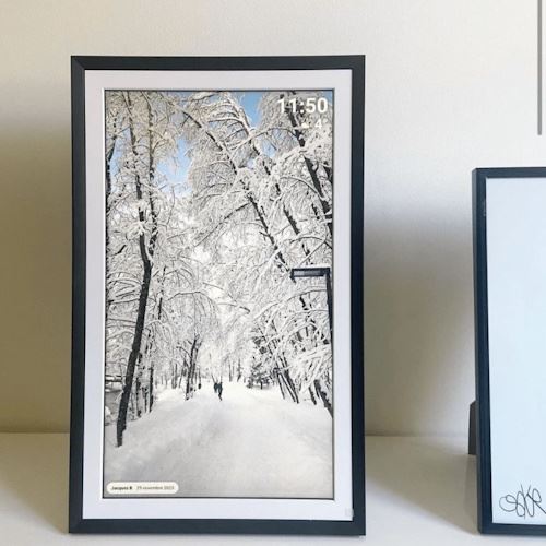 Orientação Vertical/Horizontal com suporte ou na parede | Controlo via Smartphone | Sensor de movimento | Previsão meteorológica | Programável On/Off | Foratos Foto: JPEG, PNG, BMP, WEBP | Formatos Vídeo: MP4/3GP | Memória interna: 32GB | Memória externa: Cartão Micro SD até 32 GB (não incluído), Pen USB | Efeitos de transição | Calendário | Relógio | Alimentação AC