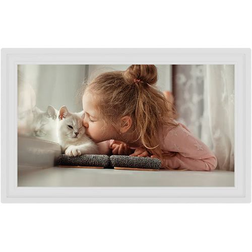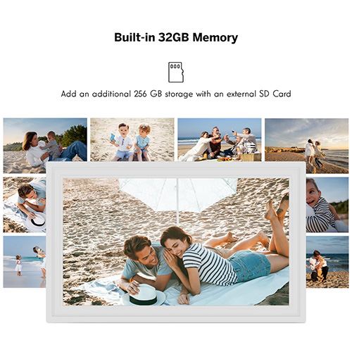 Esta elegante moldura digital possui um ecrã sensível ao toque IPS Full HD, proporcionando uma reprodução vibrante de fotos e vídeos com controlos simples de deslizar e tocar. Desfrute de apresentações de slides perfeitas e, com 32 GB de armazenamento interno e suporte para um cartão SD externo de até 256 GB, há espaço de sobra para milhares de memórias preciosas.