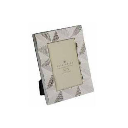 Moldura em metal, prateada com aspecto brilhante, para foto com tamanho 10x15.