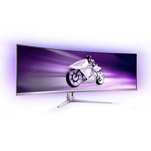Monitor Gaming Philips Envia 49M2C8900/00, com ecrã Curvo UltraWide OLED QD 10 bits de 48,9", resolução Dual QHD, tempo de resposta de 0,03 ms (GTG), até 240 Hz, DisplayHDR™ TrueBlack 400, NVIDIA® G-SYNC®, AMD FreeSync™ Premium Pro, ClearMR, Philips Ambiglow, Modo SmartImage Game, LowBlue e DTS Sound™ com saída de 30 W para um áudio superior.