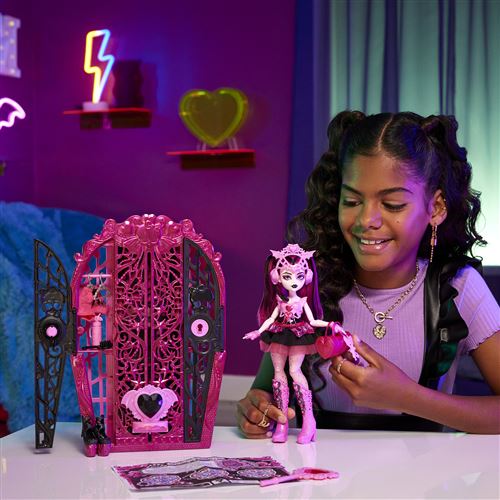 Conjunto de bonecas e acessórios Monster High Skulltimate Secrets, Monster Mysteries Draculaura com armário de vestir e mais de 19 surpresas, incluindo roupas de boneca.