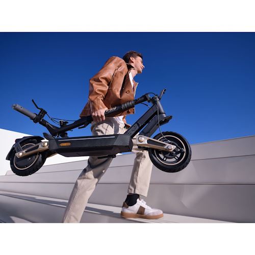 Volante ergonómico com inclinação de 5º | Detalhes com textura em imitação de Carbono | Sistema de Regeneração de Energia (recupera energia para a bateria quando trava ou desacelera) | Controlo de Tração (TCS) | Visor LCD HD | À prova de água IPX5 | Desbloqueamento por proximidade (via Bluetooth) | Controlo de funcionalidades via App Navee | Apple Find My integrado