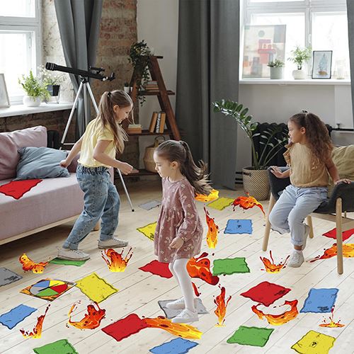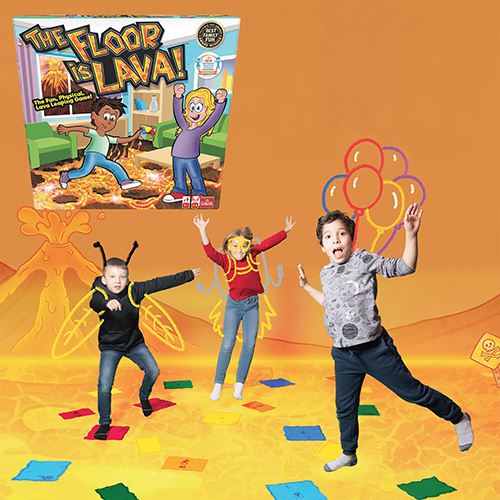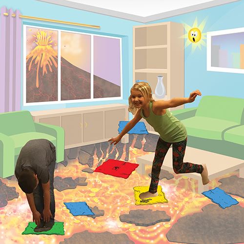 O chão é lava! O divertido e dinâmico jogo de saltar a lava. Imagina que o chão é lava quente e derretida, e tens de saltar sobre peças de espuma, espalhadas aleatoriamente por toda a divisão, para não caíres na lava escaldante. Ganha o último jogador "vivo" que não tenha caído na lava!