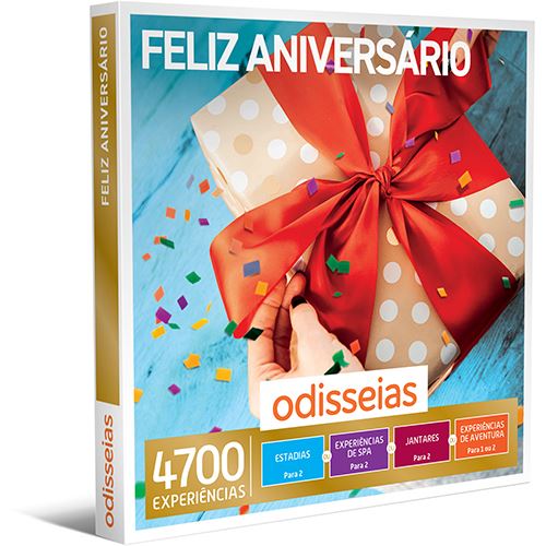 Pack Presente Odisseias - Feliz Aniversário | Experiência de alojamento, Spa, gourmet ou aventura | 1 ou 2 pessoas
