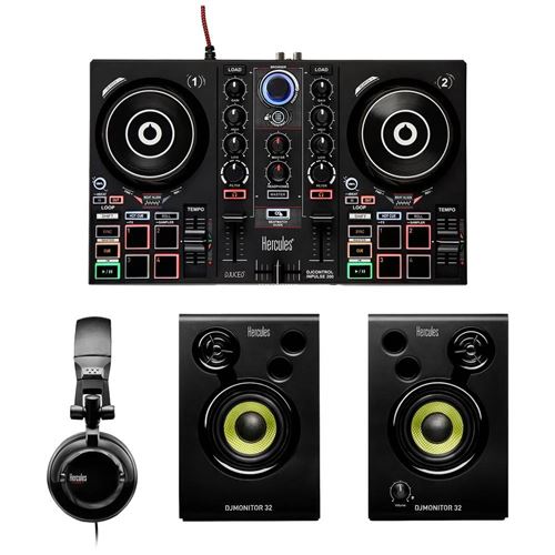 Inclui o DJControl Inpulse 200 MK2, alto-falante de monitoramento DJ Monitor 32, fones de ouvido HDP DJ45, dois softwares de mixagem diferentes e acesso a uma extensa biblioteca de títulos musicais e aulas para aprender DJing