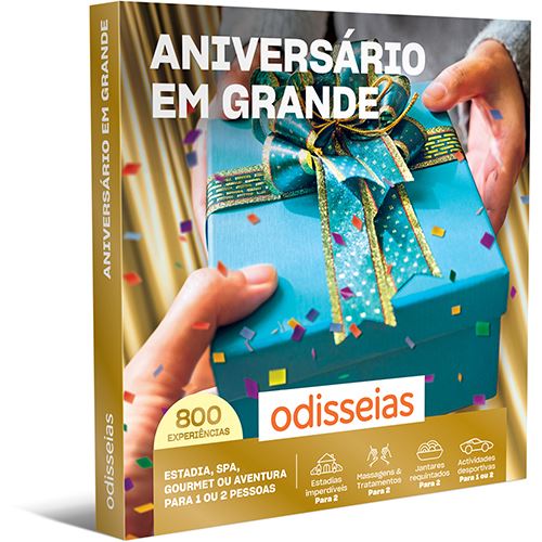 Pack Presente Odisseias - Aniversário em Grande | Experiência de alojamento, Spa, gourmet ou aventura | 1 ou 2 pessoas