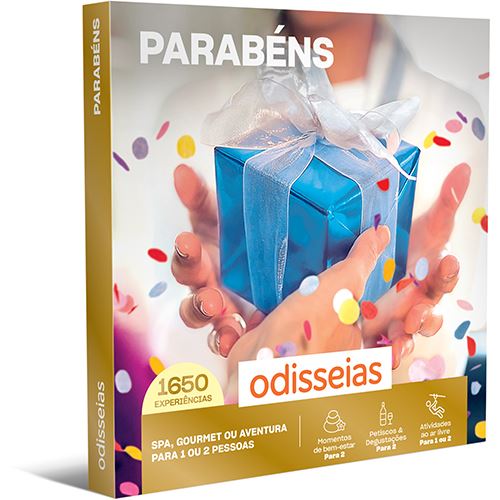 Pack Presente Odisseias - Parabéns | Experiência SPA, gourmet ou aventura | 1 ou 2 pessoas