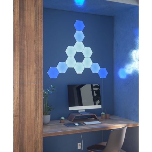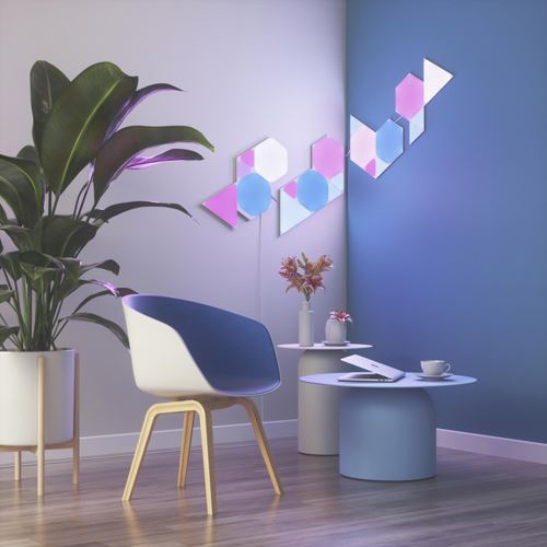 O Nanoleaf Shapes Hexagons Starter Kit, com um design de painel ultrafino, inclui tudo o que precisa para criar a sua própria iluminação de afirmação ou de realce.