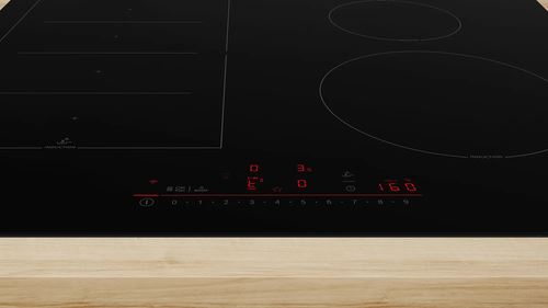 Serie 6 Placa de indução 60 cm Preto, Instalação na superfície sem moldura. Quer preparar refeições deliciosas sem ter de se debater com controlos complicados? É aí que entra o DirectSelect. Graças ao intuitivo painel de controlo e à linha iluminada, o controlo DirectSelect permite-lhe selecionar as zonas de confeção e definir o nível de potência específico pretendido, de forma direta, rápida e fácil.